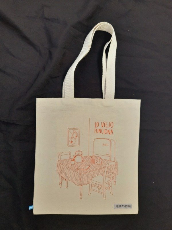 Bolsa de tela de gabardina cruda con manijas de cinta mochilera reforzada, pensadas para durar y acompañarte en todo.
