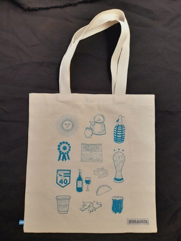 Diseño con símbolos de algunas de las cosas que más nos representa: mate, dulce de leche, la ruta 40 y más.